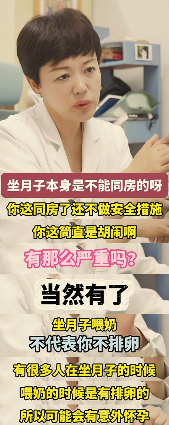 医生也是非常的生气,就怒斥这个病人说:坐月子本身就不能同房的,你这同房了还不做安全措施,你简直是胡闹。